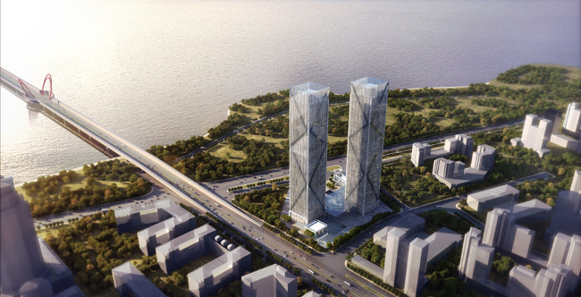 住宅與寫字樓一體的商務(wù)綜合體,總建筑面積約19萬平方米,由兩棟塔樓主體加四層地下室連體組成,主樓高220米,地上60層,地下4層,是南昌地下層數(shù)最多的大樓。項目采用方鋼管混凝土柱—鋼梁—混凝土核心筒的混合結(jié)構(gòu)。