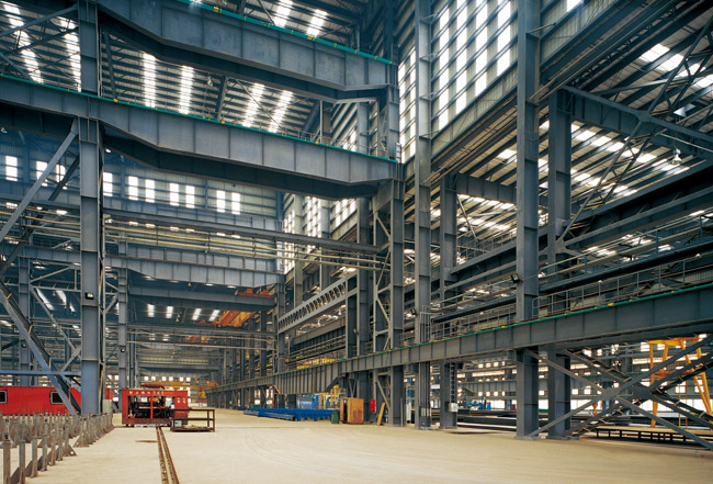 該工程為重型工業(yè)廠房,檐高30米,設有大噸位行車,最大噸位80噸,以格構柱、十字柱為主。