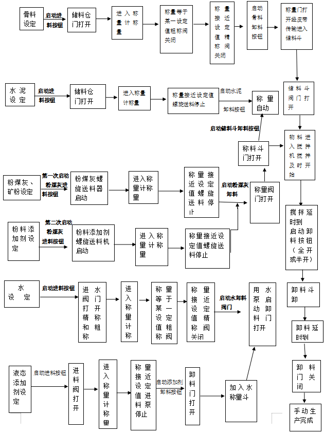 2.1.5 攪拌機卸料門出料后下一盤開始放料,依次類推直到完成設(shè)置攪拌的盤數(shù)。
