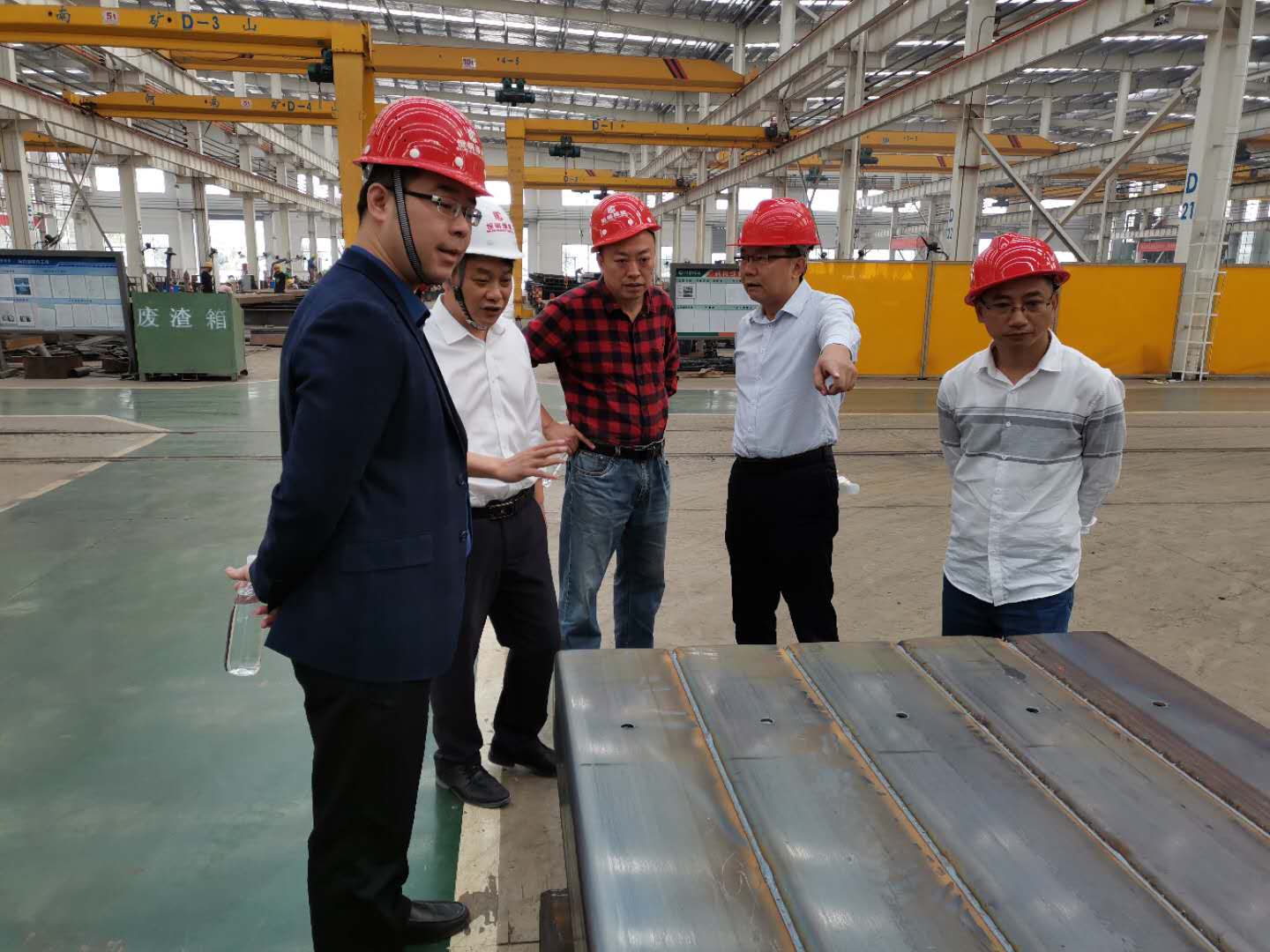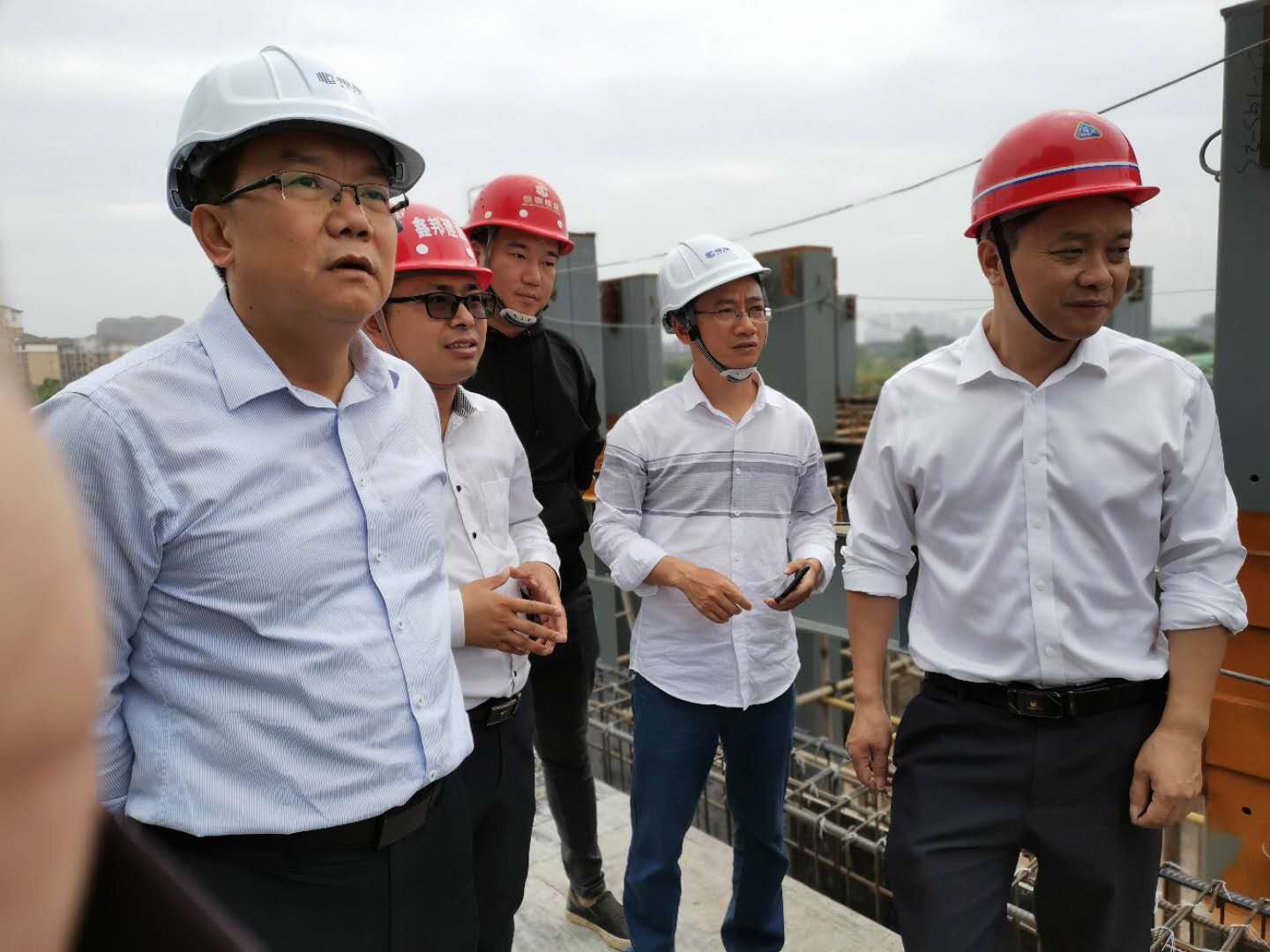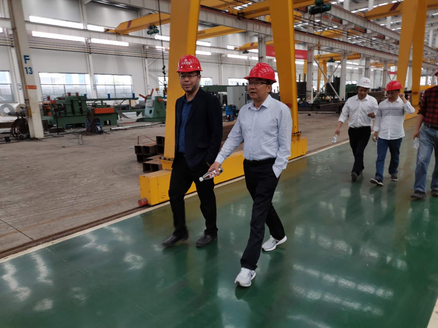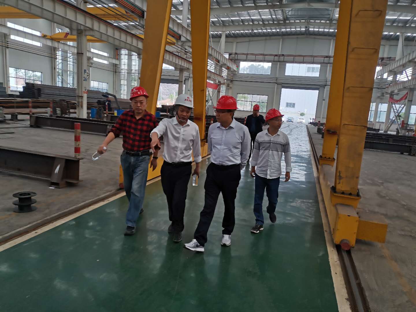 下圖為住建局領(lǐng)導(dǎo)一行在鋼構(gòu)廠區(qū)調(diào)研