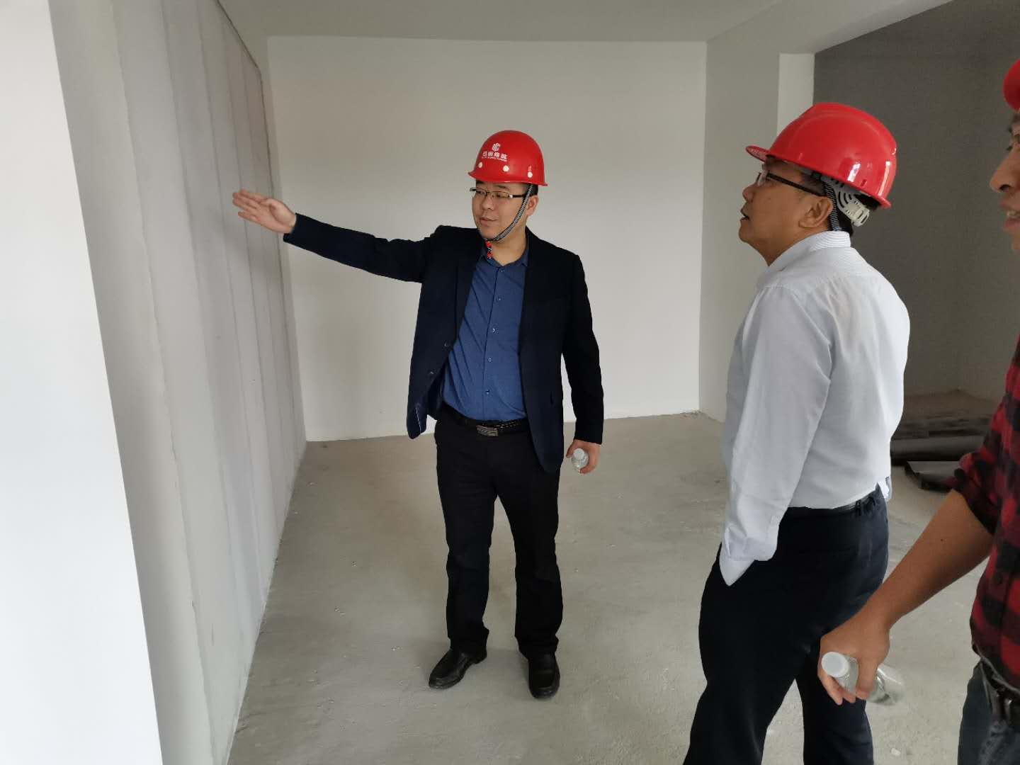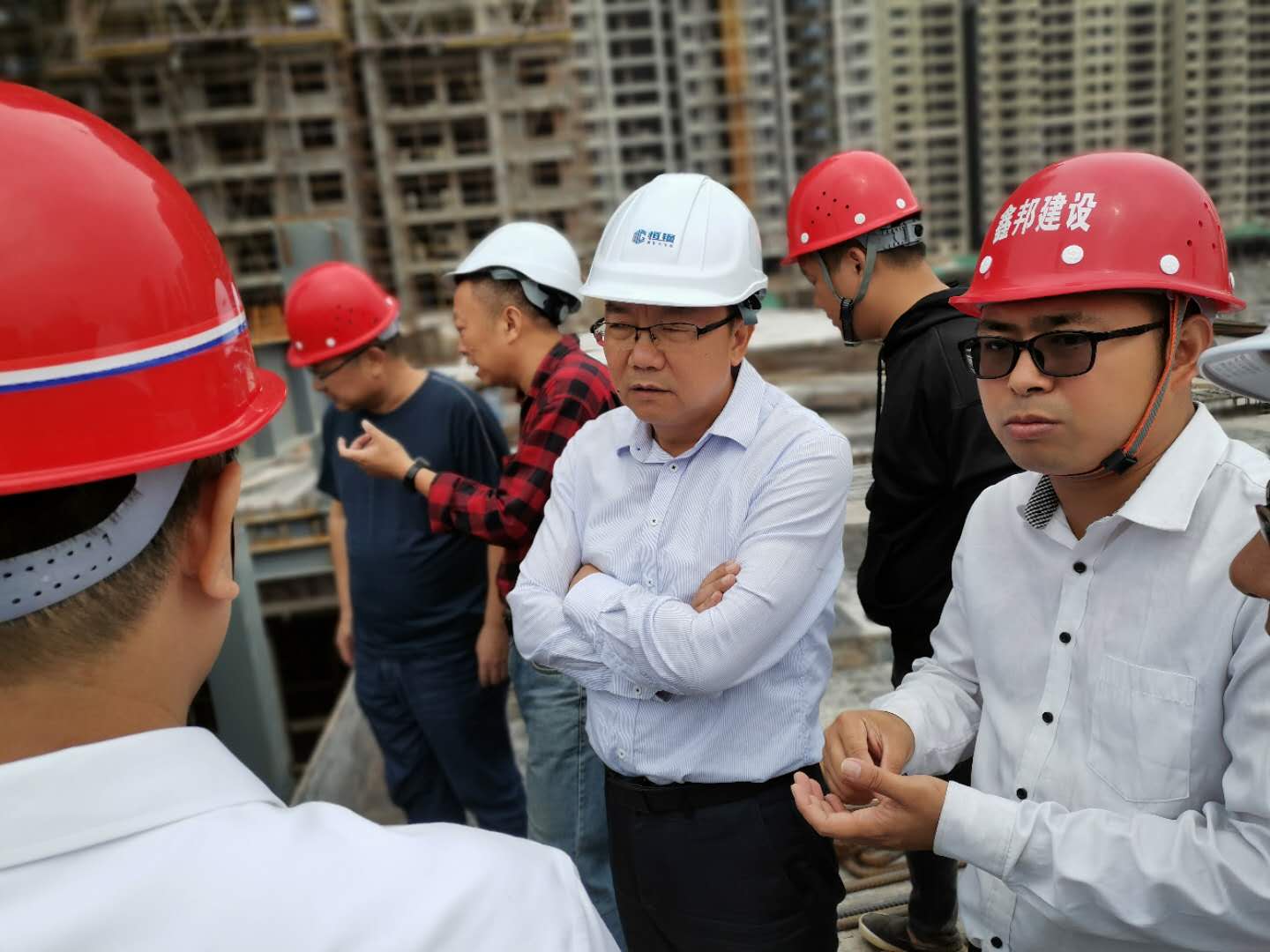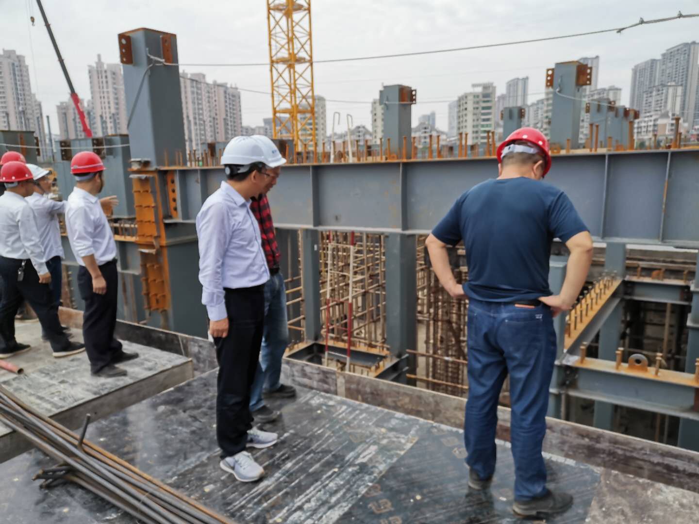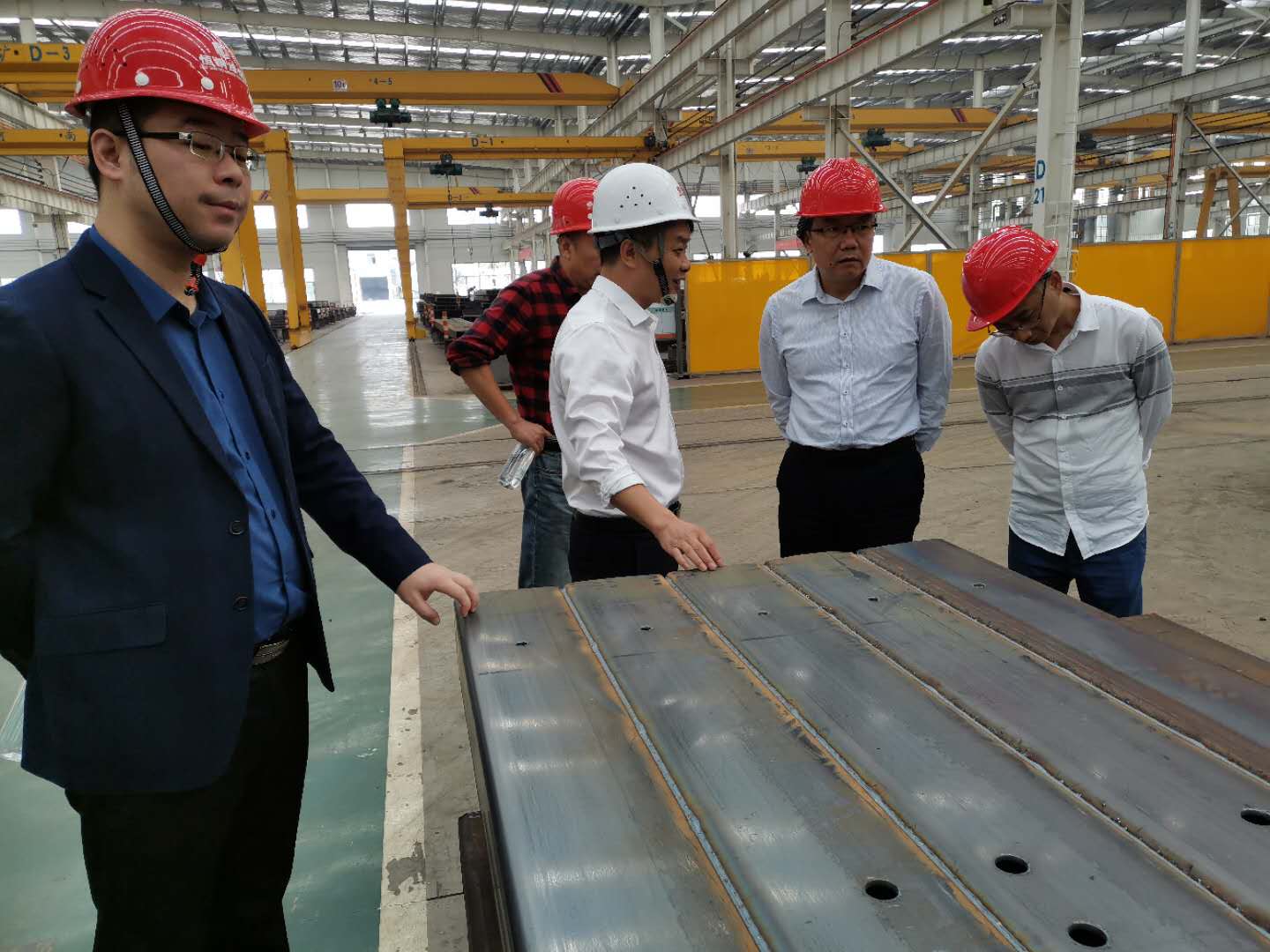 下圖為住建局領(lǐng)導(dǎo)一行在鋼構(gòu)廠區(qū)調(diào)研