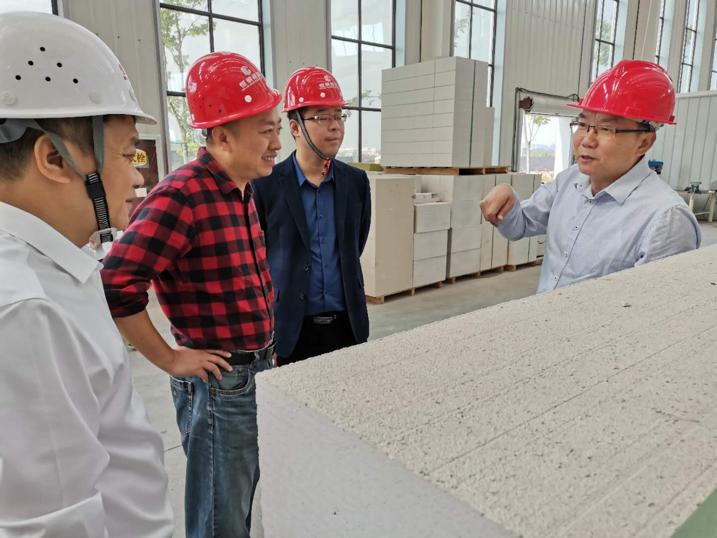 下圖是住建局領(lǐng)導(dǎo)在ALC板材/AAC砌塊廠房調(diào)研: